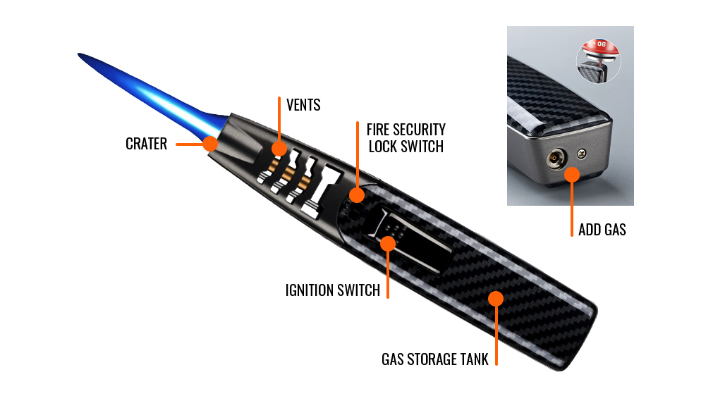 The torch lighter can lasts a very long time with out having to re-ignite like traditional lighters. Not to mention the tough, military-grade exterior & rubberized plastic make it nearly indestructible so it'll withstand tons of use. High temperature resistant nozzles and ceramic insulation sleeves make it safe and durable.